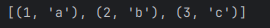pairs = [(1, 'a'), (2, 'b'), (3, 'c')]