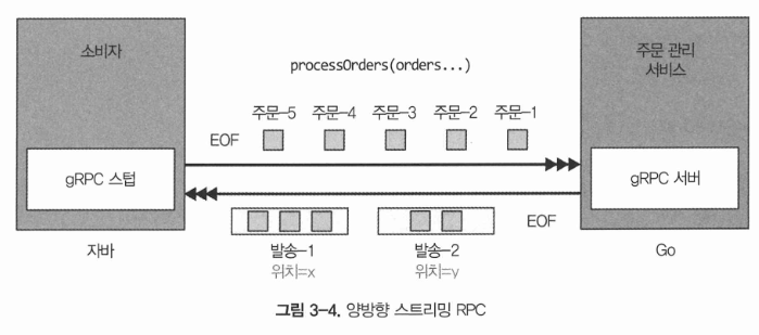 // 4) Bidirectional streaming: 다건 요청/다건 응답(양방향 스트림)